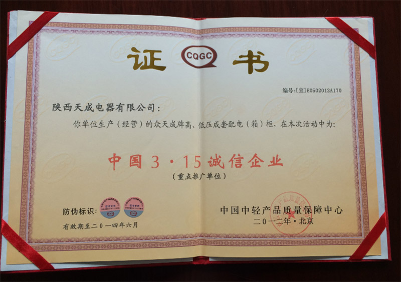 • 2012年315诚信证书